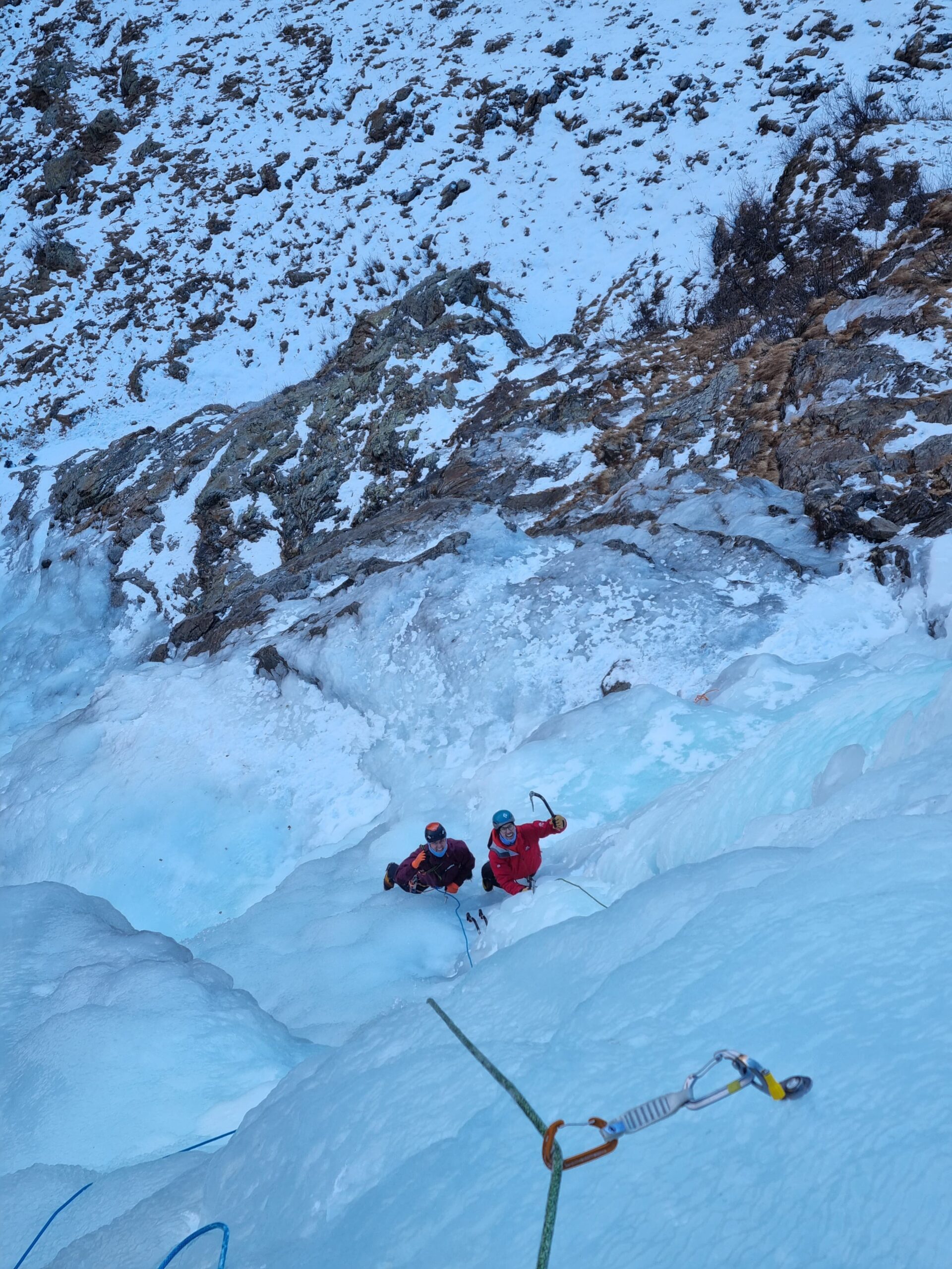 Wenn du Lust auf Eis hast, schreib uns eine Nachricht, und wir planen gemeinsam mit dir den perfekten Eisklettertrip – von der Tagestour bis hin zum Mehrseillängenkurs.